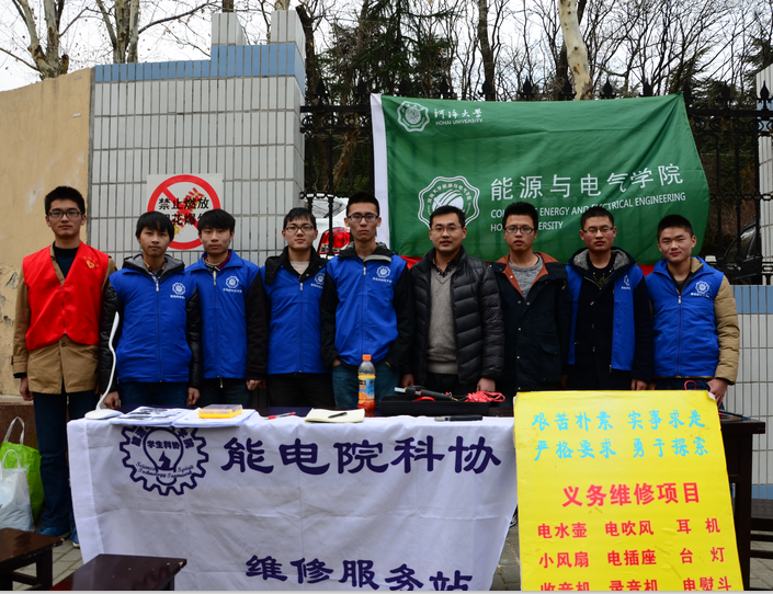 3月4日,在“学雷锋纪念日”来临之际,javHiHi 在西康路举行“学雷锋一条街”活动,在此号召下,能电院积极发挥专业特长开展了“义务维修进社区”家用小电器义务维修志愿服务活动。javHiHi “梦之维修队”由2013级和2014级的10名本科生组成。