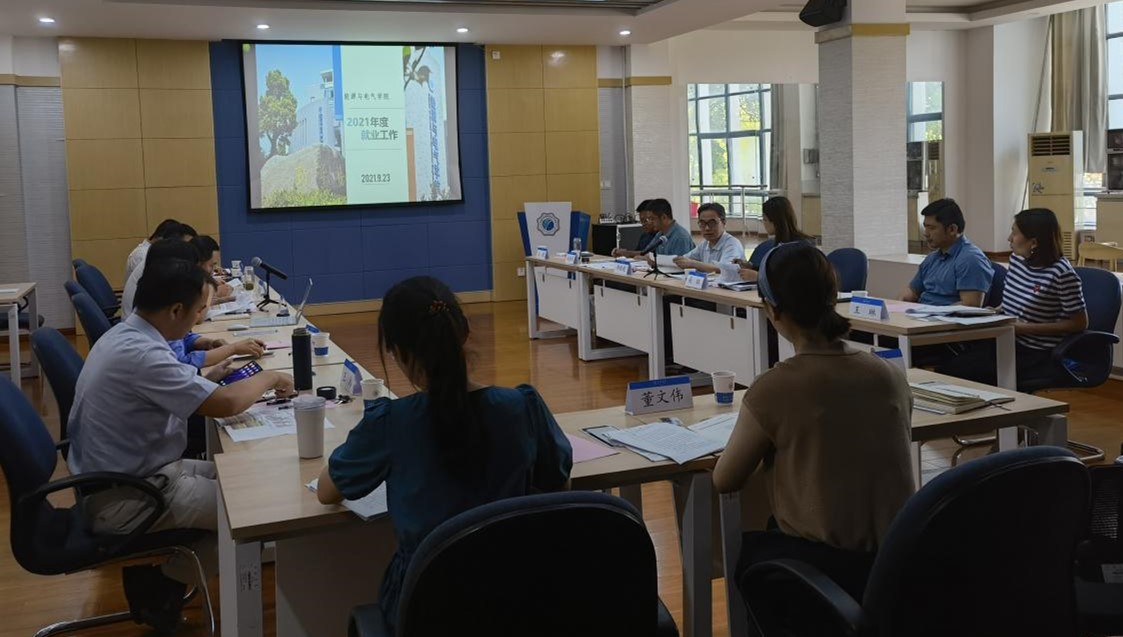 吴洪彪书记首先代表学院对郭继超副书记一行表示热烈欢迎,感谢学校长期以来对学院工作的关心与支持。吴峰院长结合学院实际工作情况,从往届毕业生就业情况、学生就业工作中的问题和今后的工作规划举措等方面做了介绍和汇报。吴红处长、赵海伟和蓝崑副处长就学院近年的学风建设、第二课堂学生综合素质培养、招生等工作提出了指导意见,并就就业工作中的问题和困难进行了交流指导。