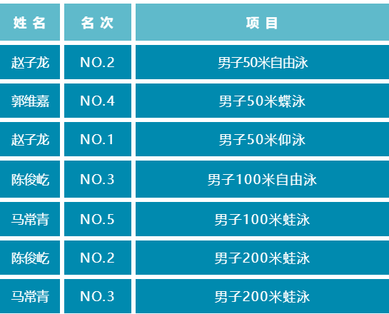 本次比赛分为男子组和女子组,共有50米蝶泳、50米仰泳、50米蛙泳、50米自由泳、100米自由泳、100米蛙泳、200米自由泳、200米蛙泳八种项目。javHiHi 共有8名学生参赛,经过激烈角逐,获得男子50米仰泳第1名、男子50米自由泳第2名、男子200米蛙泳第2名、男子200米蛙泳第3名、男子100米自由泳第3名等成绩,展现了电气学子的拼搏精神和昂扬锐气。