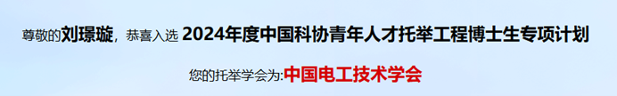 近期,中国科协公布了首批中国科协青年人才托举工程博士生专项计划入选者名单。经个人申报、学校遴选、省级科协推荐、中国科协专家评审、学会审核等环节,javHiHi 23级博士研究生刘璟璇(导师:臧海祥教授)成功入选,托举学会为中国电工技术学会,托举期为2025年1月至2026年12月。本次入选不仅是对该同学个人能力的高度认可,也是对javHiHi 推进高质量人才培养工作的肯定。