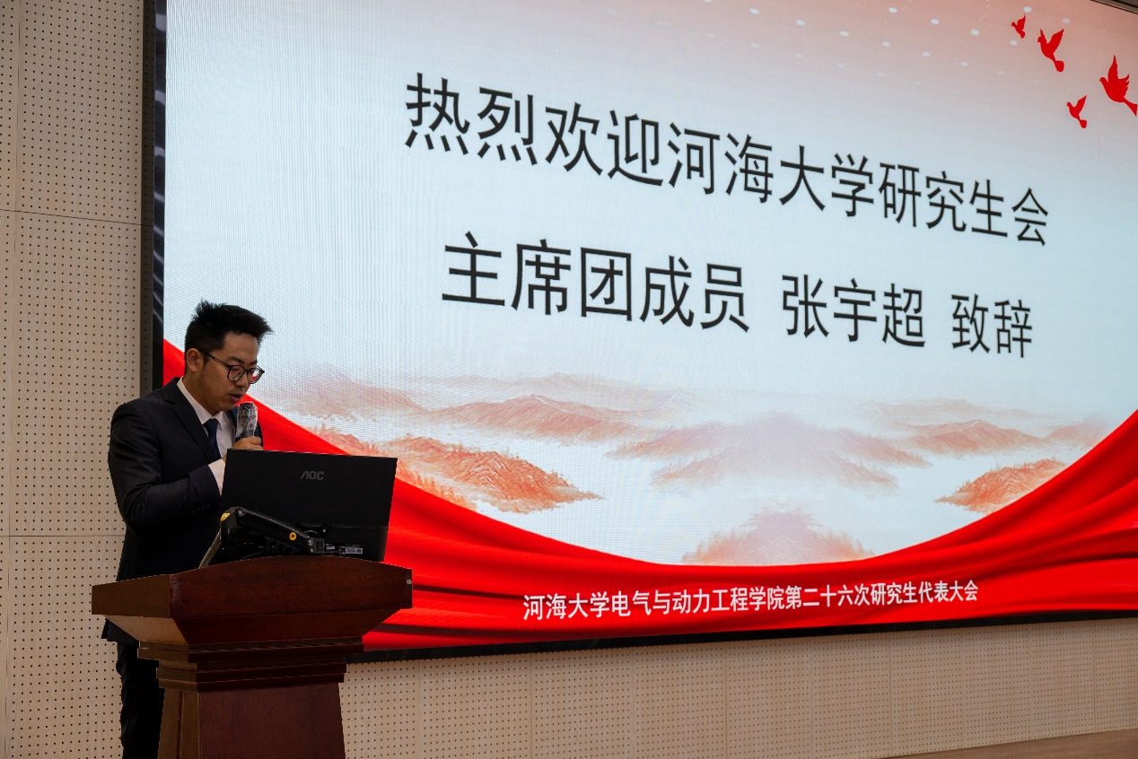 大会伊始,校研究生会主席团成员张宇超代表校研究生会发表致辞。他肯定了学院研究生会一年来在学术科研、文体活动、权益服务等方面取得的成绩,并提出三点建议:一是夯实制度根基,通过规范规章、严明纪律,筑牢研会发展的“硬支撑”;二是建合作之桥,通过加强院校联动、促进资源共享,打造品牌活动的“新亮点”;三是坚守服务本位,着力拓宽权益保障的“覆盖面”。要调动一切积极因素,切实回应学生需求,凝聚磅礴的青春力量。