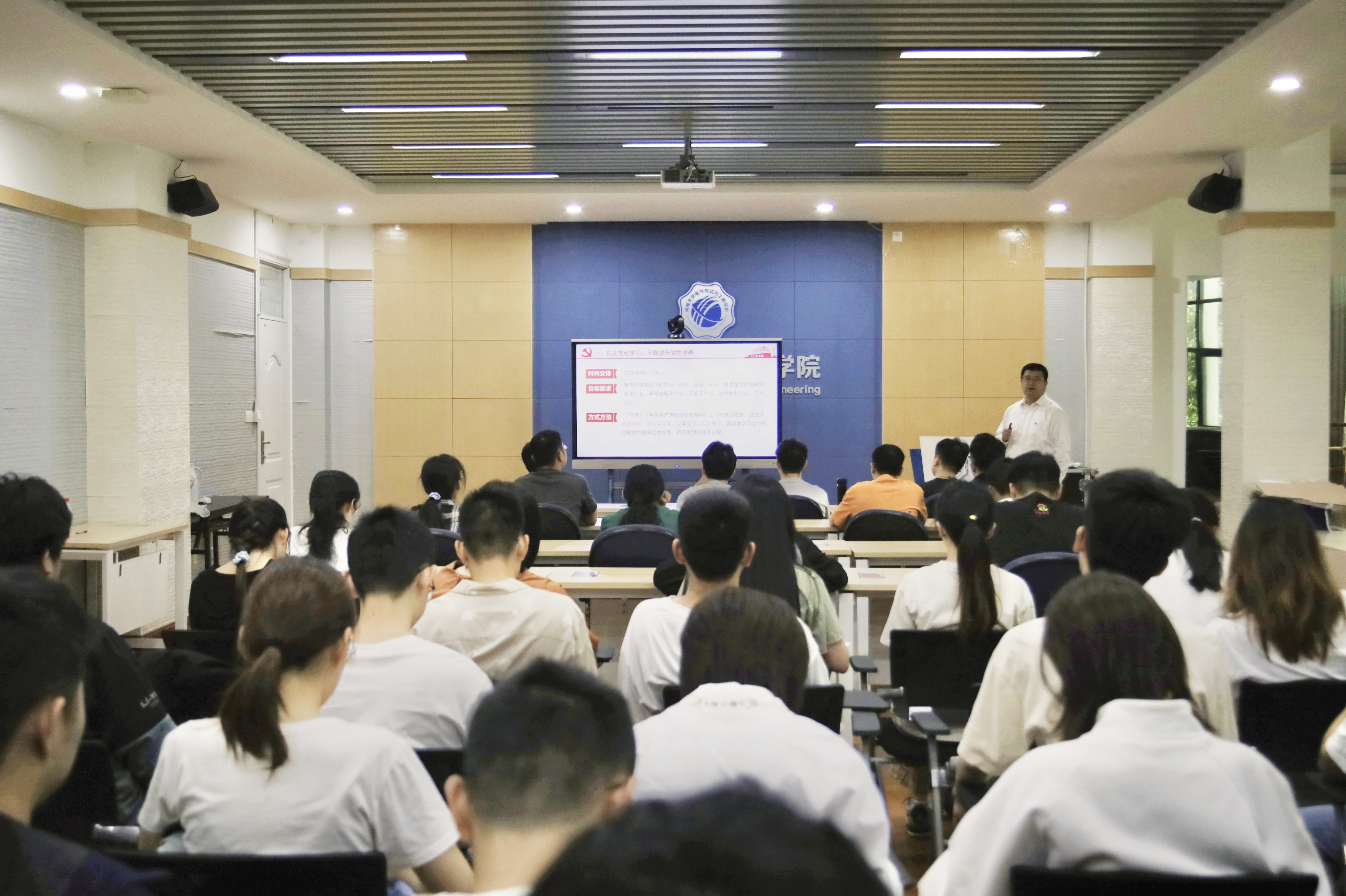 6月6日,电气与动力工程学院党委书记吴洪彪以《学党纪 建新功 做有理想、敢担当、能吃苦、肯奋斗的新时代青年党员》为题,讲授党纪学习教育专题党课暨毕业生党员理想信念专题教育。