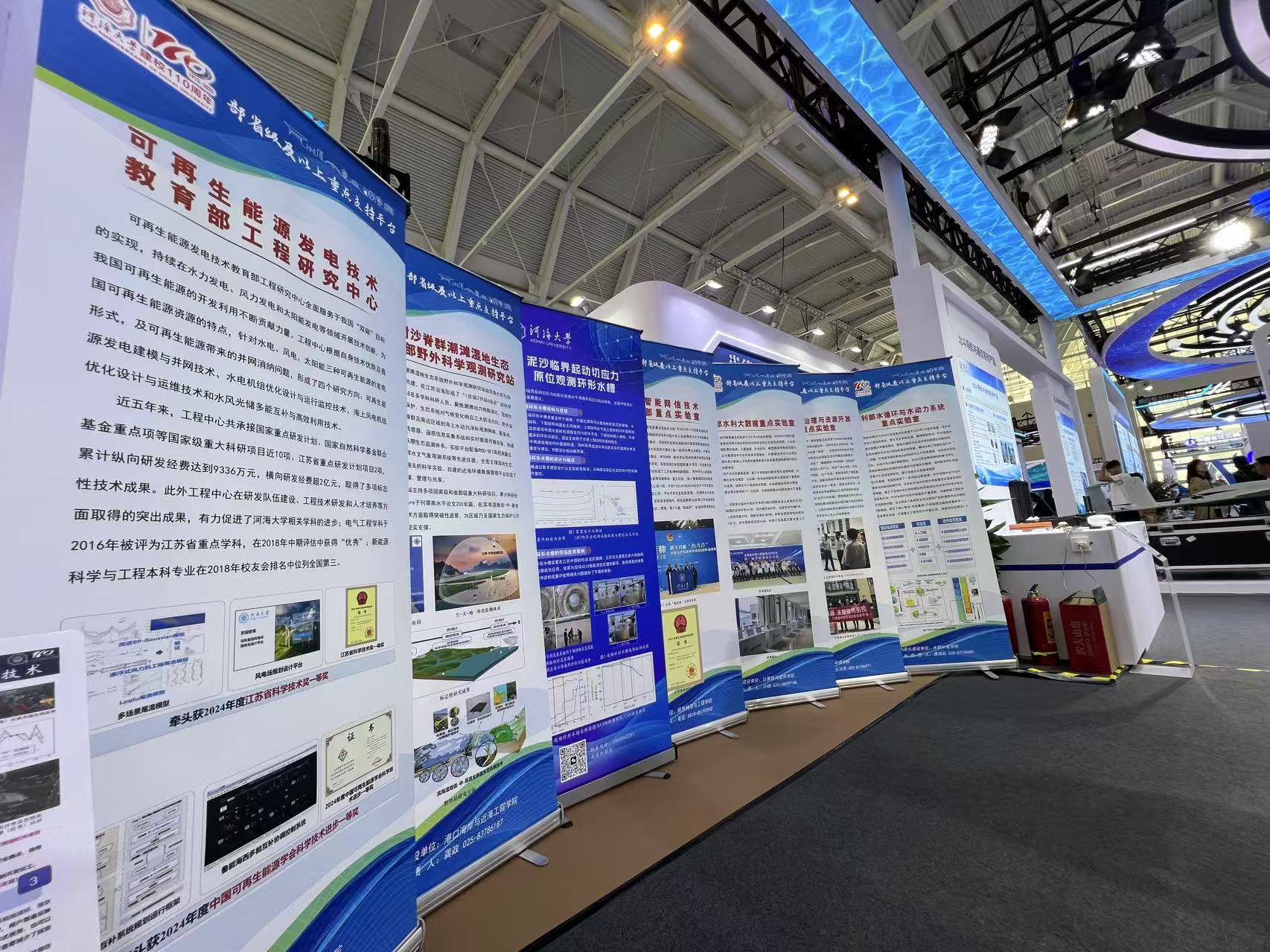 实验室在本次水博会上设置了展板,展示了可再生能源发电技术教育部工程研究中心全面服务于我国“双碳”目标的实现,持续在水力发电、风力发电和太阳能发电等领域开展技术创新,为我国可再生能源的开发利用做出的贡献。